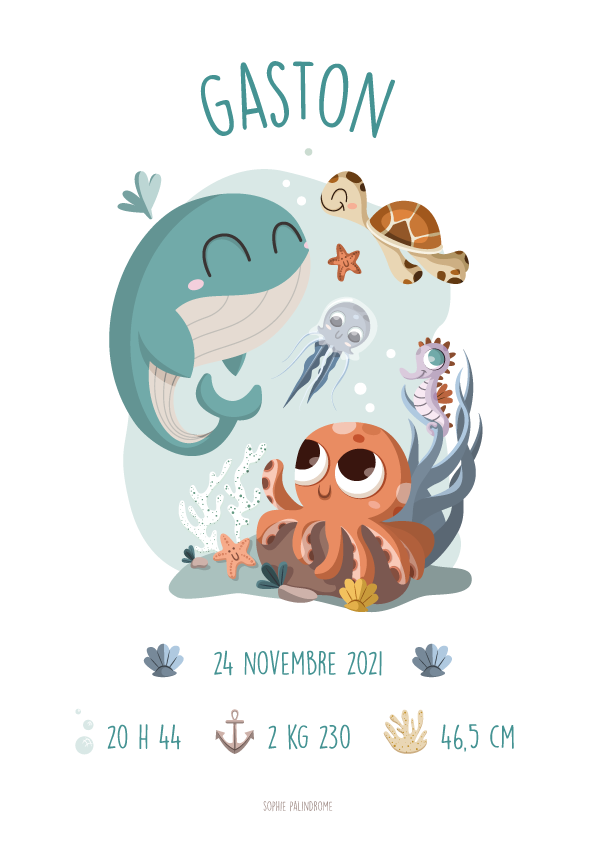 Commandez dès maintenant ce tableau de naissance exceptionnel et créez un héritage visuel qui fera sourire votre famille pendant des générations. Laissez-vous emporter par l’univers magique des animaux marins et capturez les souvenirs inoubliables de ce moment précieux de la vie de votre enfant.