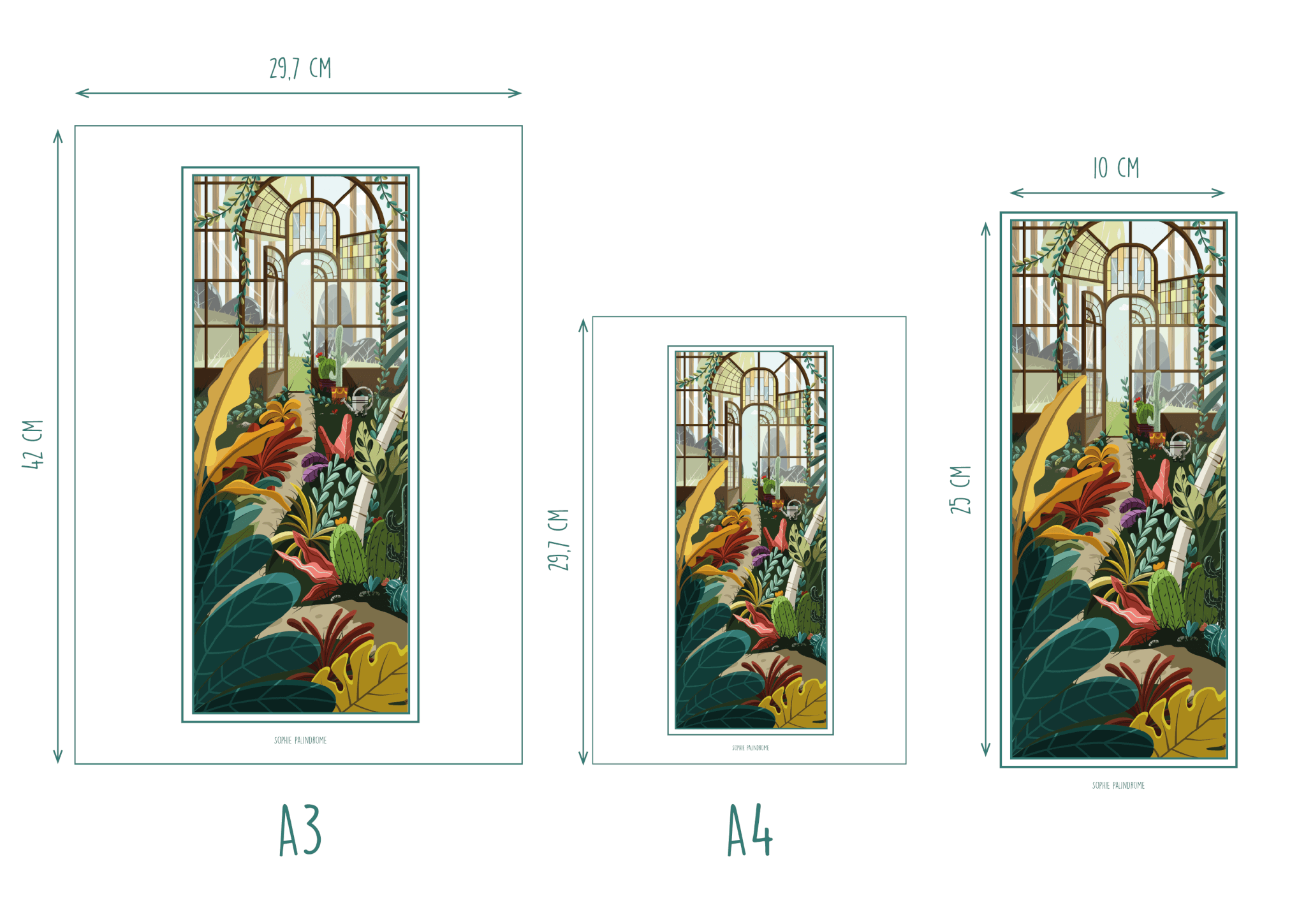 – L’illustration est disponible au format A4 (21 x 29,7 cm) imprimée sur du papier ultra blanc 350g/m2, ainsi qu’au format A3 (29,7 x 42 cm) imprimée sur du papier extra blanc 250g/m2.
